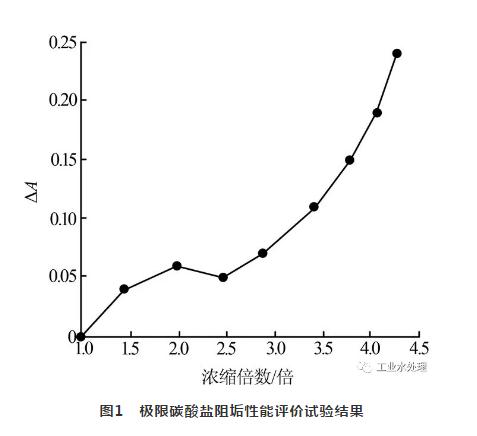 試驗用水為含一定濃度SW203A的海水,極限碳酸鹽阻垢性能評價結果見圖1。