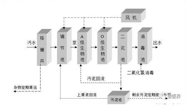 1、總體思路采用成熟可靠的A/O生物接觸氧化法為處理工藝,同時輔以格柵攔截、沉淀池澄清、消毒劑消毒等物化處理手段;